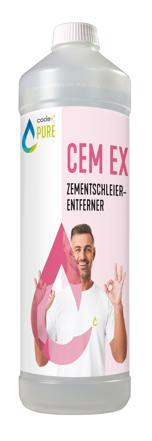 codex Cem Ex ist ein hoch aktiver, saurer Zementschleierentferner zum Entfernen von Zementschleiern und Ausblühungen. Das hochaktive Konzentrat eignet sich für die fachgerechte Bauschluss- und Grundreinigung von säurebeständigen Fliesen-, Cotto- und Natursteinbelägen.